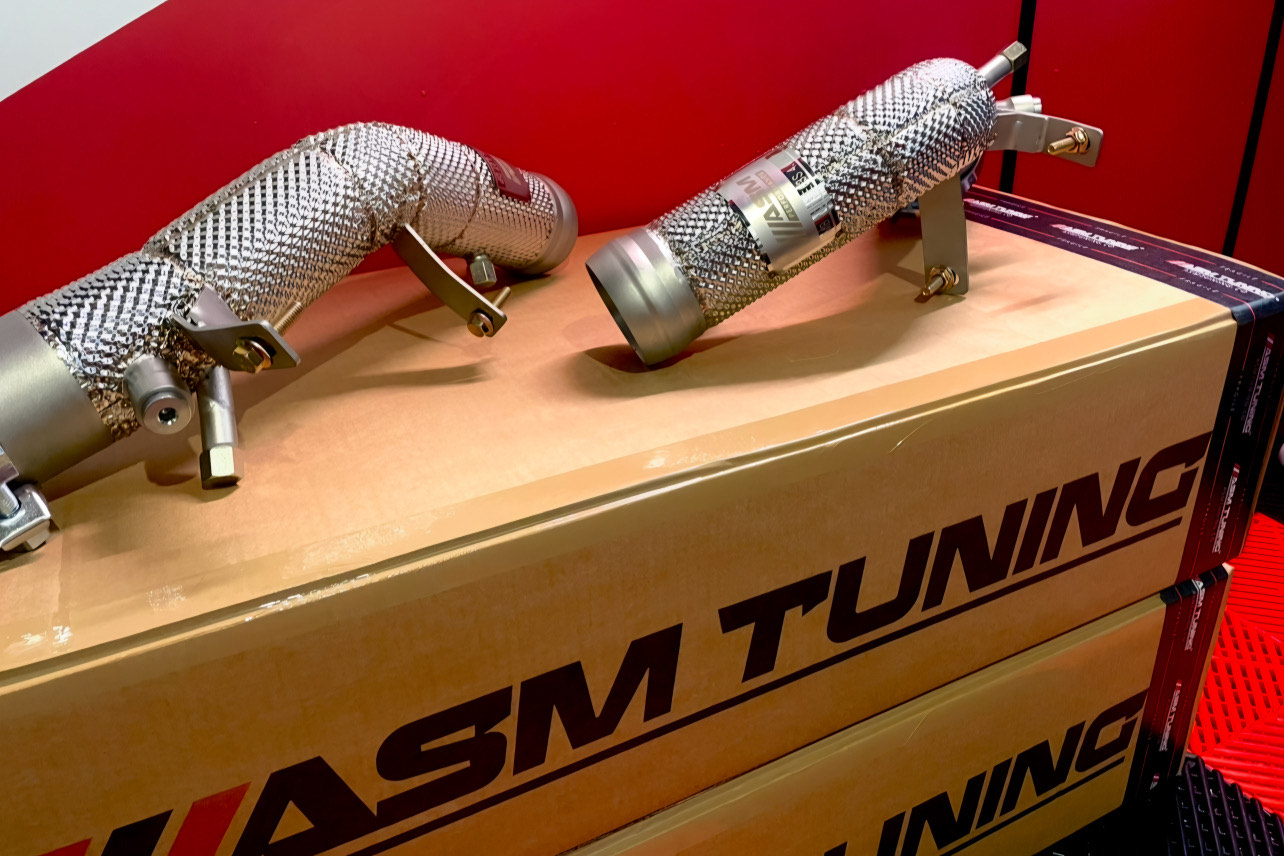 Fabricat din oțel inoxidabil T304, downpipe-ul ASM este disponibil în variante cu catalizator sport (Sport Cat) sau decatalizat (Decat), compatibil cu motoarele B48 și B58.