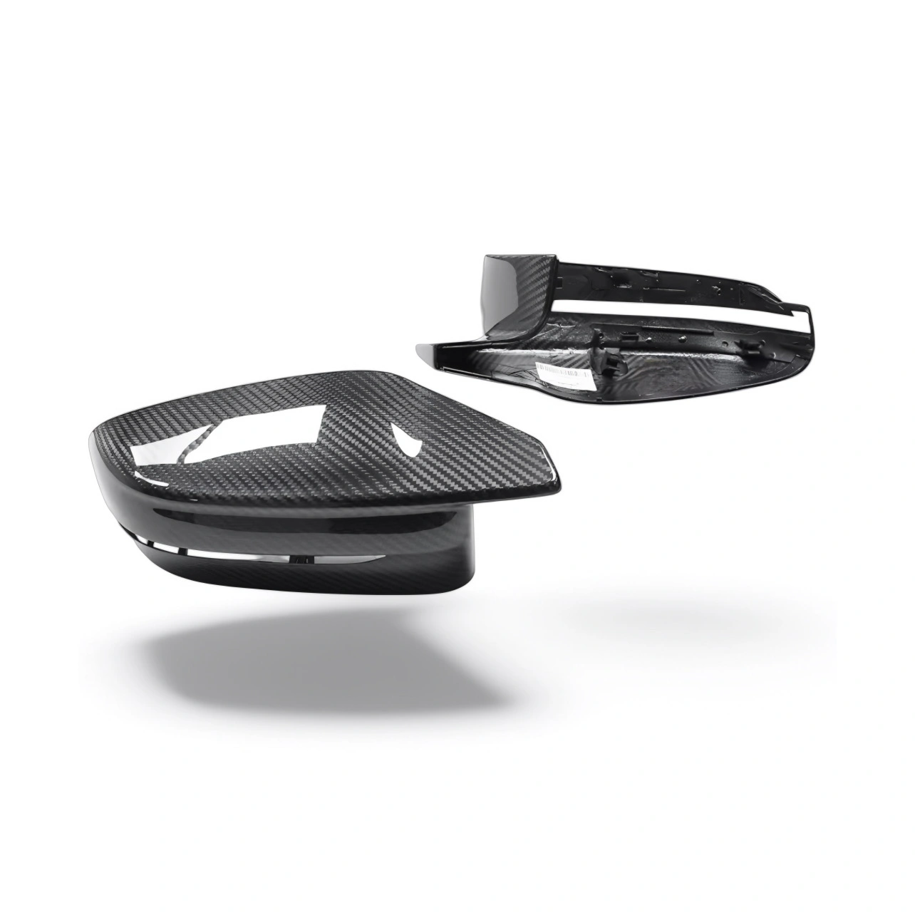 Capace oglinzi din carbon pre-preg pentru BMW M3 G80/G81, M4 G82/G83, M2 G87, M240i G42 – înlocuire completă OEM, design sportiv și finisaj lucios premium.