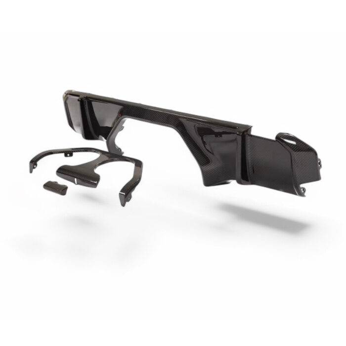 Difuzor spate din fibră de carbon pentru BMW M3 G80/G81 și M4 G82/G83. Stil OEM, fabricat din carbon pre-preg lucios, pentru un upgrade vizual premium.
