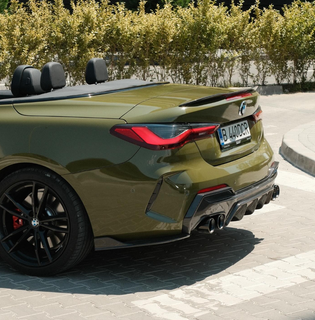 Difuzor spate din fibră de carbon pentru BMW Seria 4 G22, G23 și G26 cu pachet M Sport. Design agresiv, finisaj lucios și potrivire OEM.