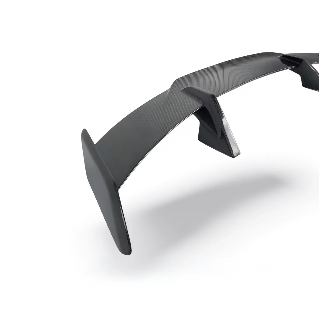 Fabricat din carbon pre-preg autentic cu finisaj lucios premium, eleronul oferă greutate redusă, rigiditate structurală excelentă și rezistență la UV.