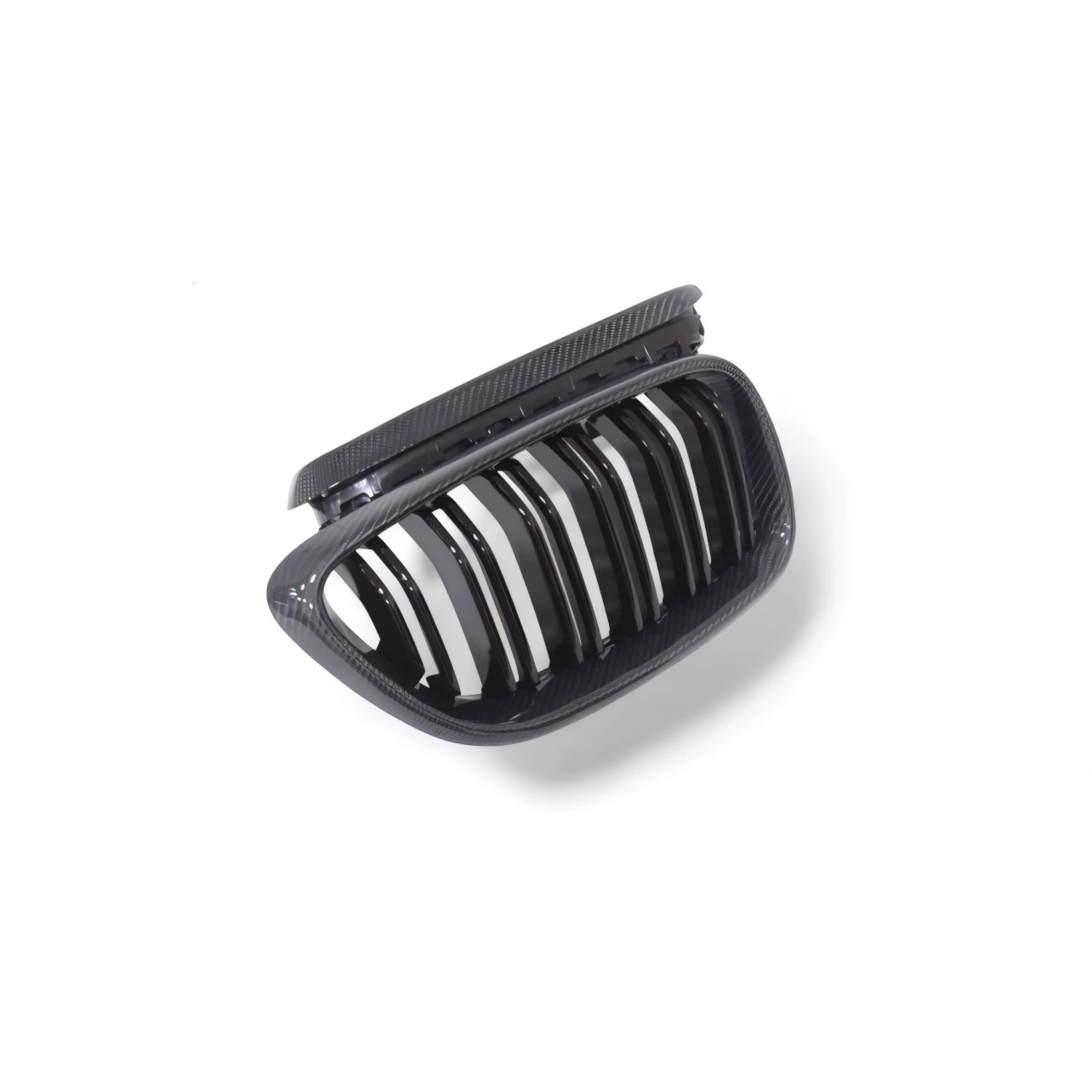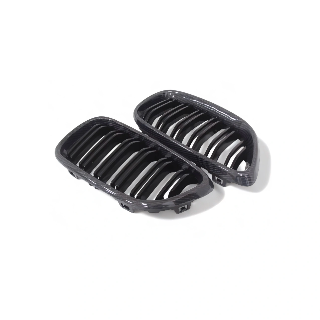 Îmbunătățește aspectul frontal al BMW-ului tău cu această grilă dublă din fibră de carbon, compatibilă cu modelele M2 F87 și Seria 2 F22.