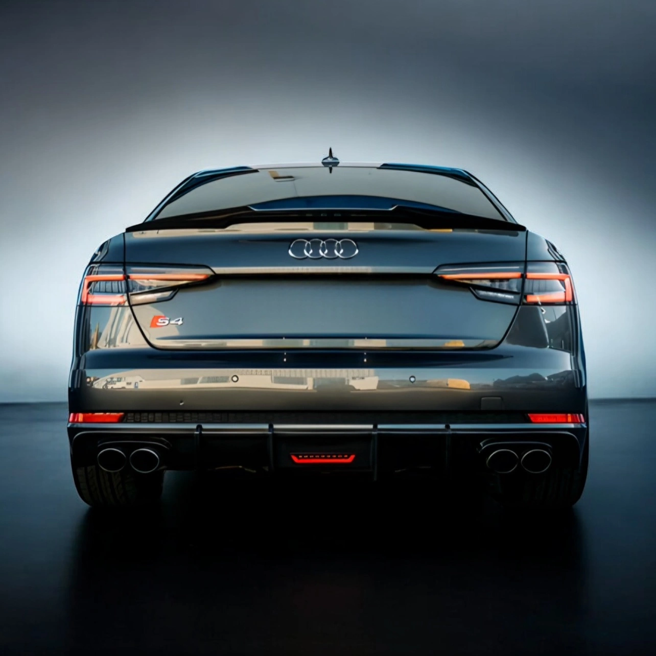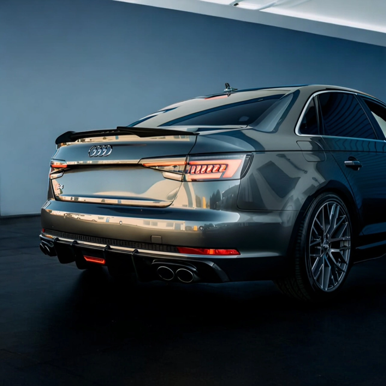 Difuzor spate cu iluminare LED integrată, din fibră de carbon pentru Audi A4 B9 S-Line și S4. Design agresiv, finisaj lucios și montaj OEM.