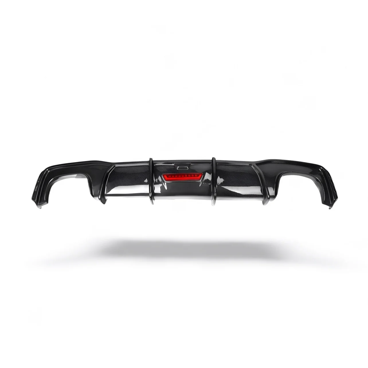 Difuzor spate agresiv din fibră de carbon cu LED integrat pentru Audi A7 C8 și S7 C8. Design sportiv, compatibil OEM, montaj facil.