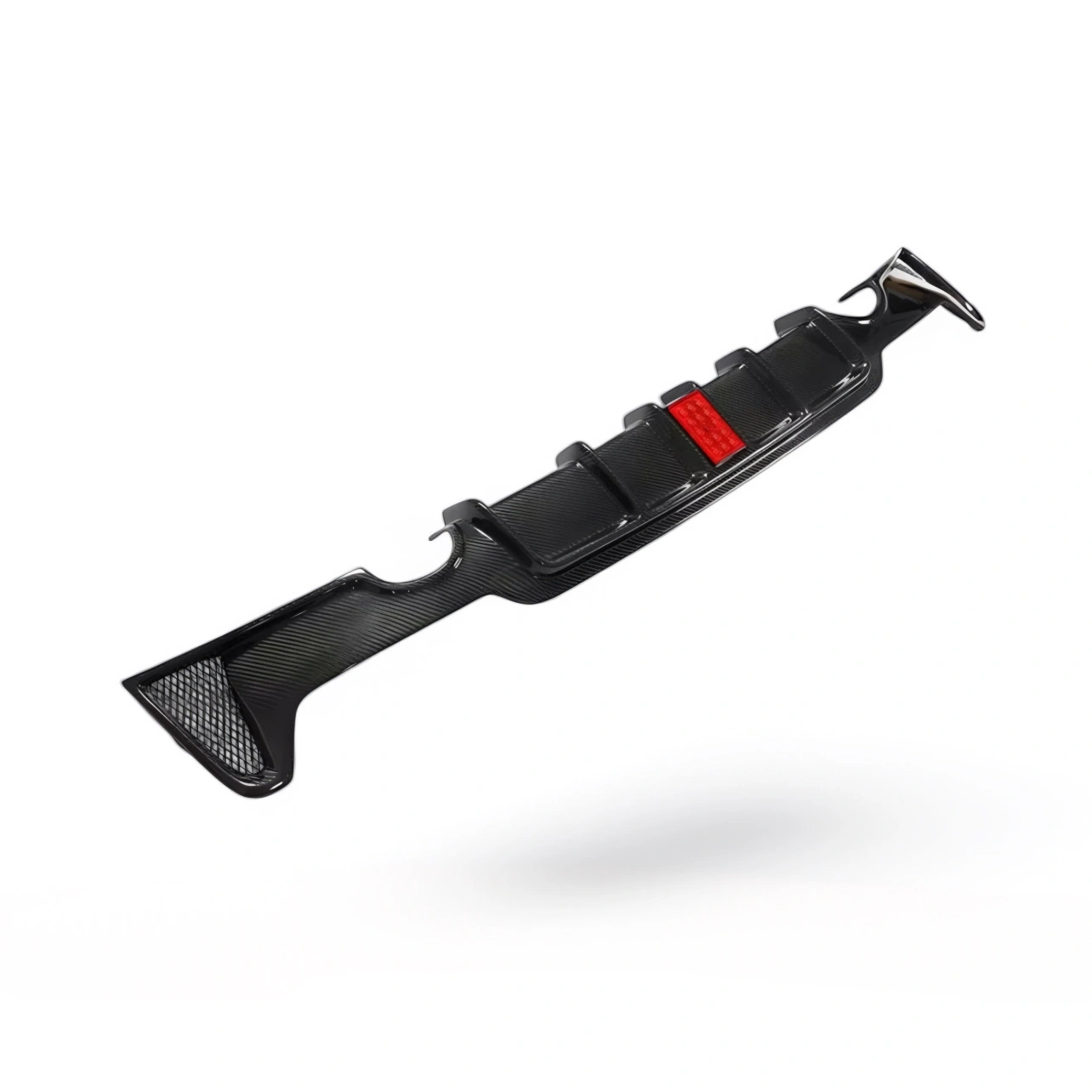 Difuzor bară spate din fibră de carbon cu LED integrat pentru BMW Seria 4 F32 Coupe, F33 Cabriolet și F36 Gran Coupé. Design agresiv, finisaj lucios și compatibilitate OEM.