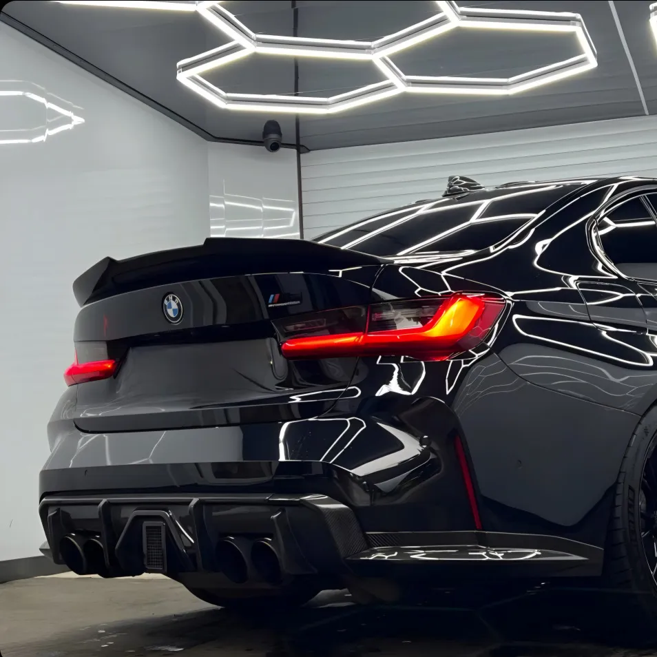 Adaugă un plus de performanță estetică și luminozitate sportivă cu acest difuzor spate din dry carbon cu LED integrat, dedicat modelelor BMW M3 G80/G81 și M4 G82/G83. Realizat din fibră de carbon pre-preg (dry carbon), oferă o greutate redusă și un finisaj lucios spectaculos, inspirat din motorsport.