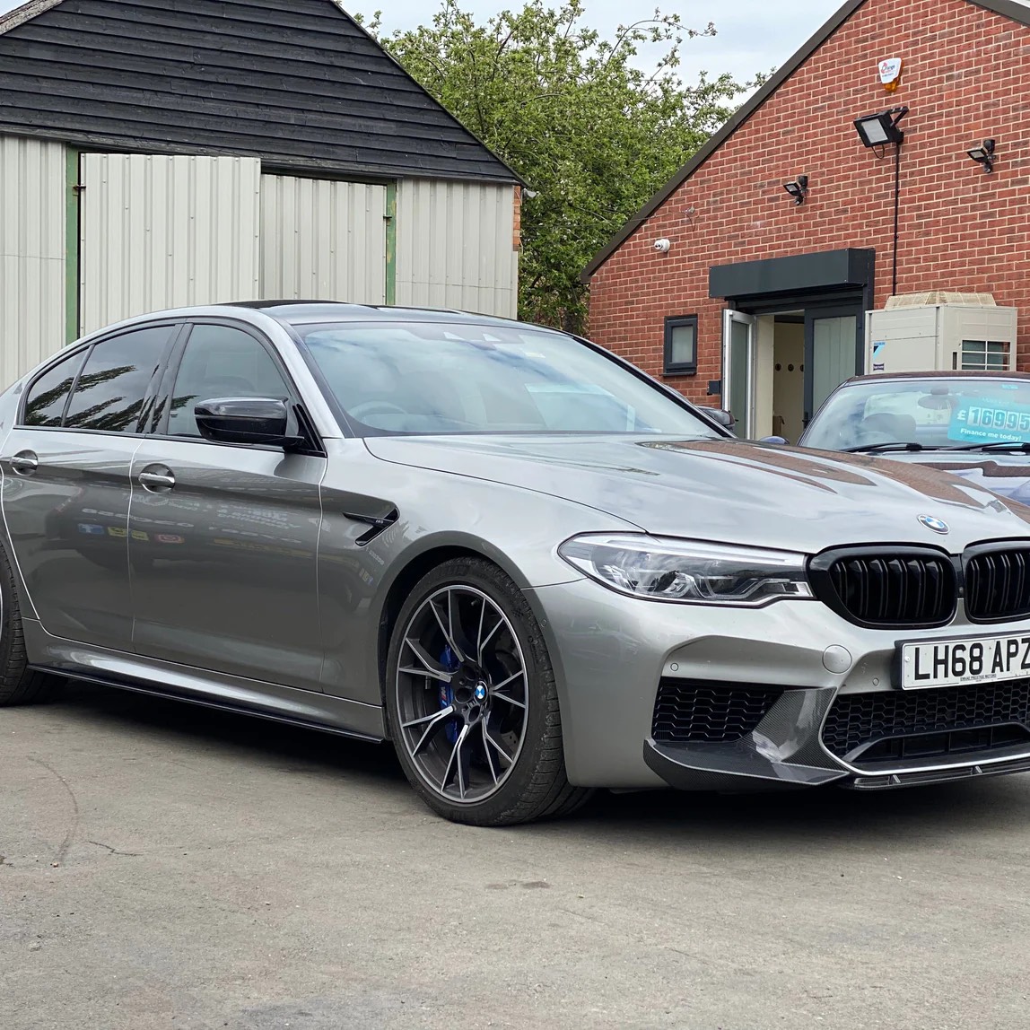 Prelungiri laterale din fibră de carbon pentru BMW M5 F90 și Seria 5 G30/G31. Design sportiv, potrivire OEM și finisaj lucios premium.