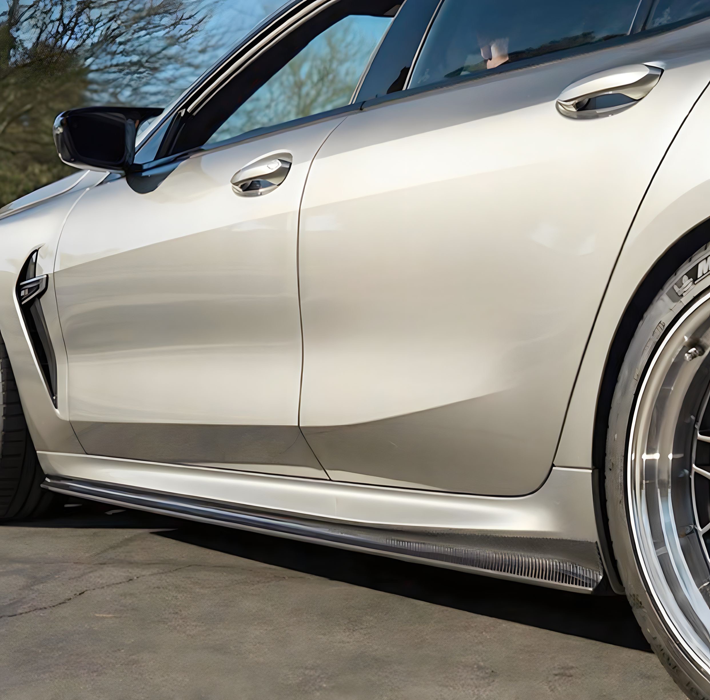 Prelungiri laterale din fibră de carbon pentru BMW Seria 8 G16 Gran Coupe. Design sportiv, integrare precisă și aspect premium.