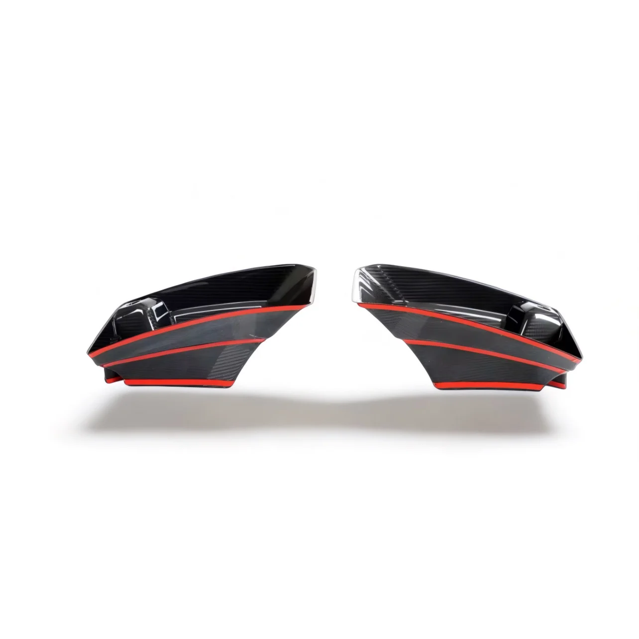 Fabricate din fibră de carbon reală (pre-preg), aceste grile laterale oferă un aspect agresiv, inspirat din motorsport. Cu un finisaj lucios și o greutate redusă, se potrivesc perfect în locașurile originale ale barei față, fără modificări sau tăieturi.