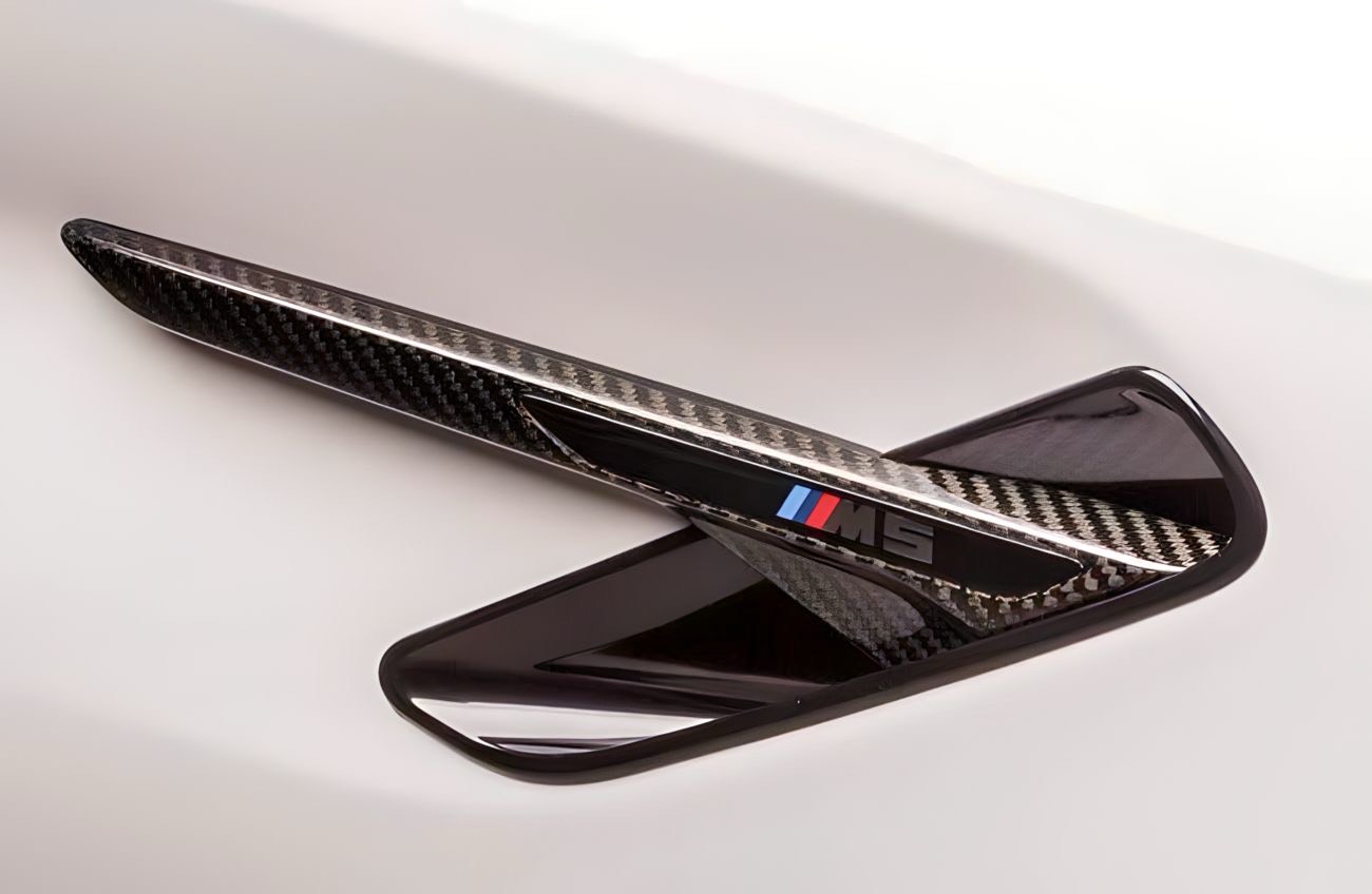 Prize aer laterale din fibră de carbon pentru BMW M5 F90/F90N. Design sportiv, potrivire OEM, upgrade estetic cu aspect motorsport.