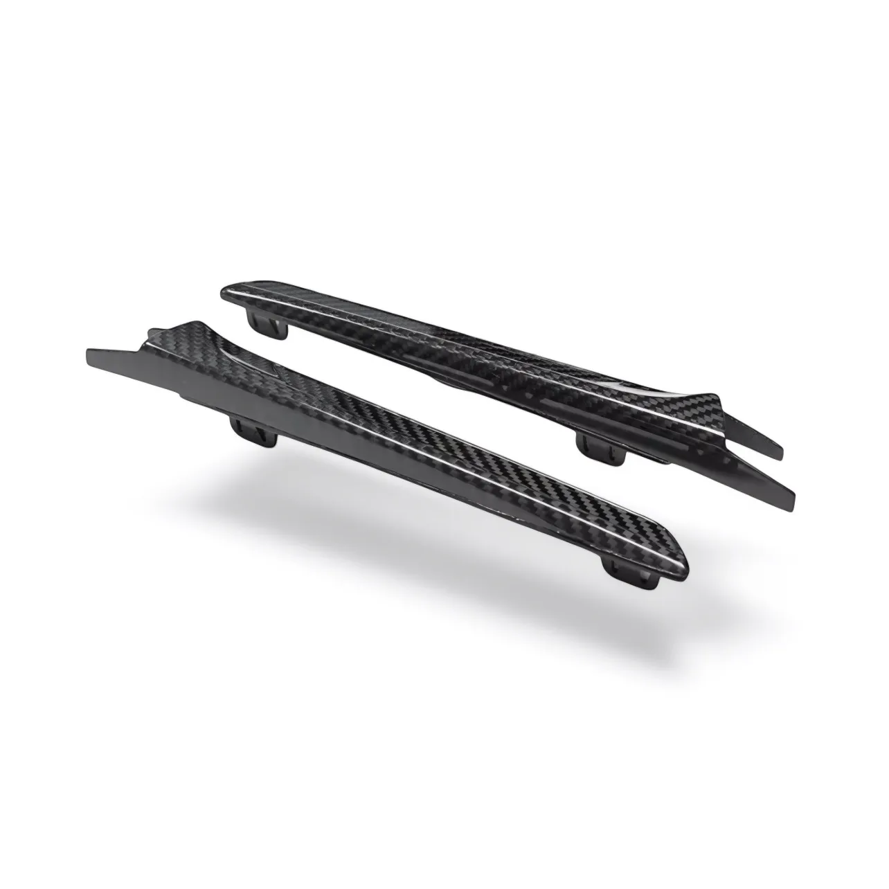 Fabricate din carbon pre-preg de calitate superioară, aceste prize adaugă un accent aerodinamic și estetic esențial pentru o apariție inspirată din motorsport. Designul OEM permite o integrare perfectă în aripile laterale fără modificări, oferind un upgrade vizual de impact cu o greutate redusă.